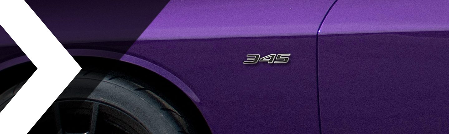 “345“ is the cubic inch designation of the historic 5.7-liter HEMI® V8 engine. For the final year of production, the Dodge Challenger R/T will come standard with a “345“ light plate to replace the original 'HEMI' fenders as a salute to this legendary V8 engine. The available Blacktop® package will include a black version of the “345“ plate.